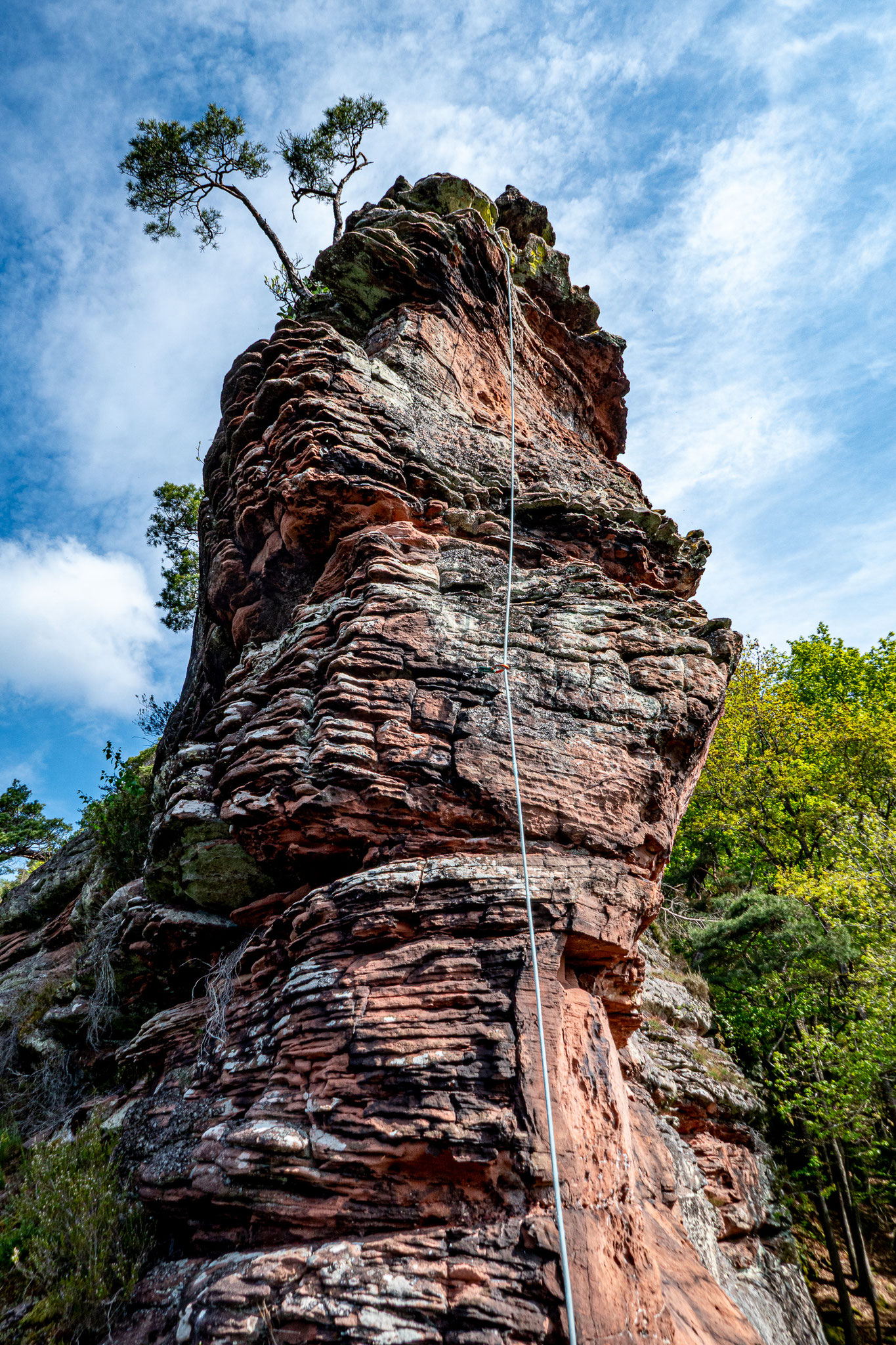 Zustieg: Von der Straße Sarnstall - Spirkelbach ca. 200 m westlich der Straßengabelung breiten Fahrweg bergauf folgen bis zu dem (hier) breitem Waldweg, der horizontal unter den Felsen am Rindsberg verläuft. Von hier in 1 min zum gut sichtbaren Wandfuß des Vorgipfels.