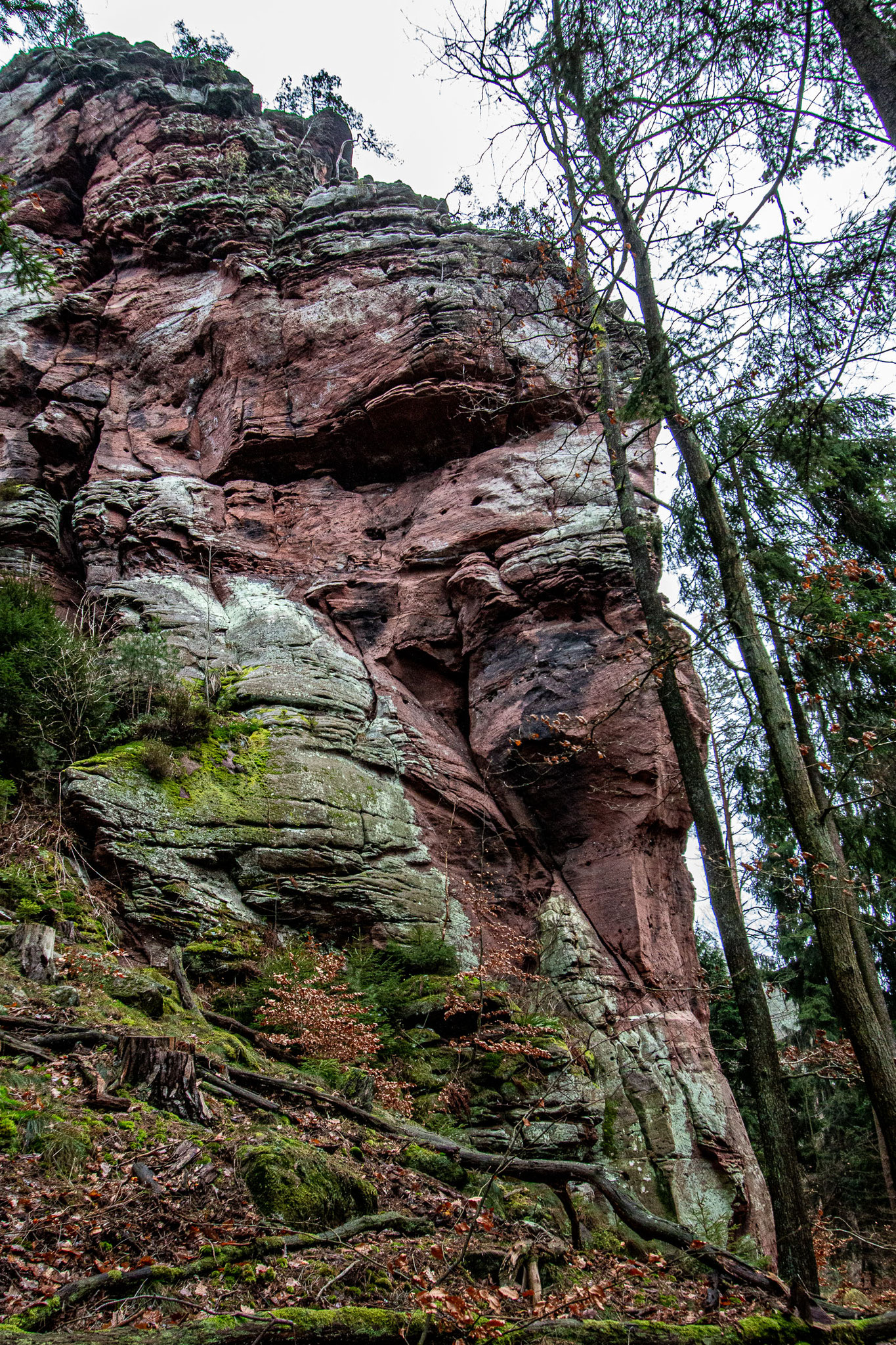 Am Südhang des Rindsberges, westlich vom Weidenthaler Fels. In halber Höhe der Talwand ist dem Massiv ein kleiner Gipfel vorgelagert.