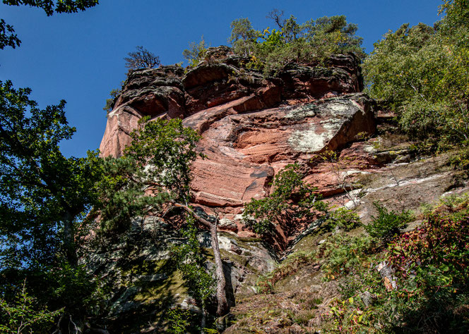 Zustieg: Siehe "Östl. Kesselwand". Auf dem breiten Waldweg in östl. Richtung weiter unter den Pfeiler.
