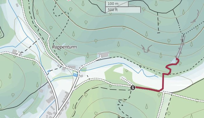 Zustieg: Vom Parkplatz am Kelterhaus oder vom Wanderparkplatz am Beginn des Glastal über die Wiese zu Forstweg unter der Wand und links den Hang hoch zum Fels.