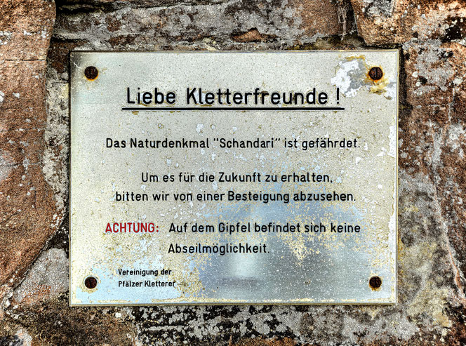 Achtung! Das Klettern auf den einsturzgefährdeten Gipfelkopf des Schandarie ist behördlich verboten. Daher bitte nicht hinaufklettern. Es gibt auch keine Möglichkeit zum Abseilen an dem brüchigen Fels.