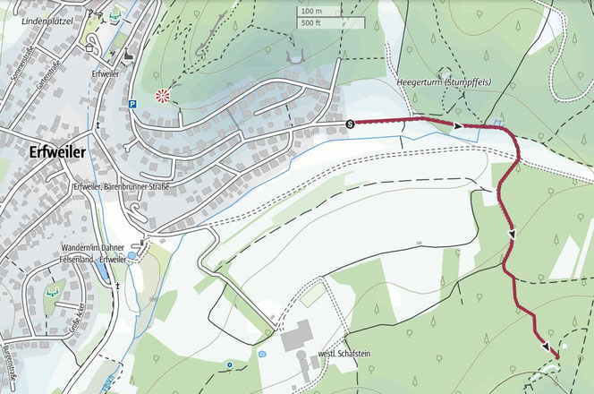 Anfahrt: In Erfweiler zum östl. Ende der Bärenbrunner Straße, hier parken.