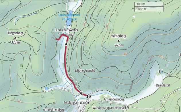 Anfahrt: In Erfweiler in die Winterbergstraße bis zum nördlichen Ende zum Kelterhaus, hier parken.