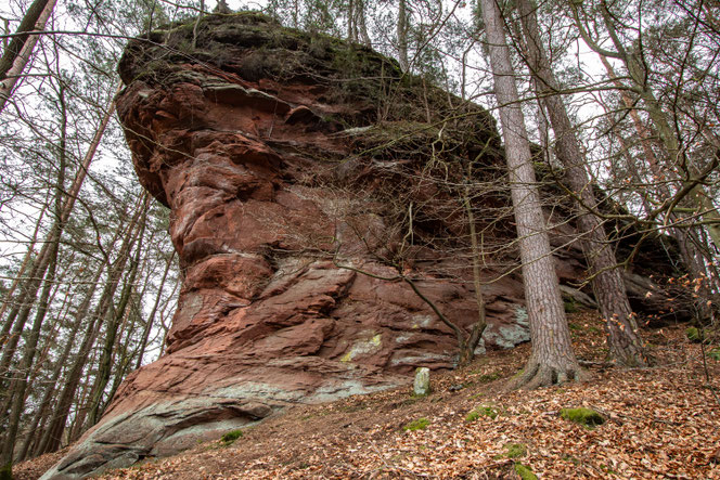 Östlich der Ruine Altdahn gelegen fristet der Fels ein Schattendasein.