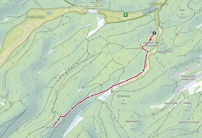 Anfahrt: Zur Dahner PWV Hütte im Schneiderfeld, hier parken.