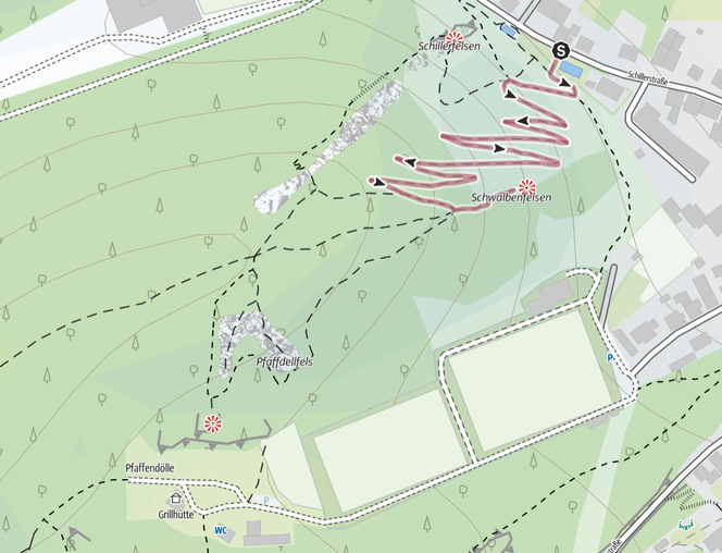 Zustieg: von der Kneipanlage auf Pfad unter die Felswand