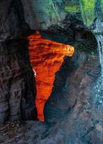 Anfang April, wenn die Bäume noch nicht im Laub stehen strahlt die untergehende Sonne die Felsen in ein besonderes Licht. Hingehen und staunen.