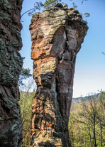 Seit das US-Militär das Waffen-Depot an der Grenze zum Elsaß verlassen hat, kann man endlich die verstreut und versteckt im Wald stehenden Felsgipfel erkunden.