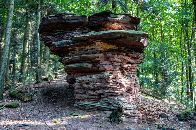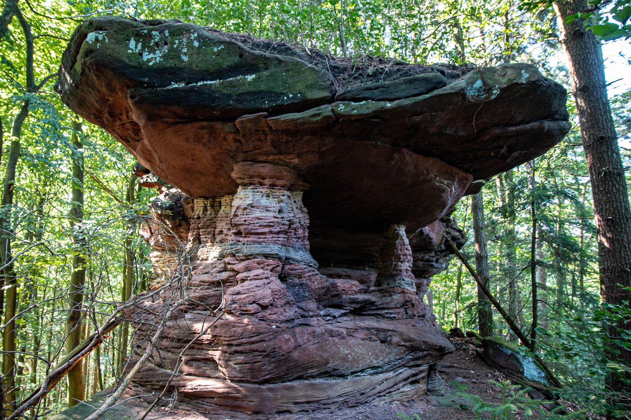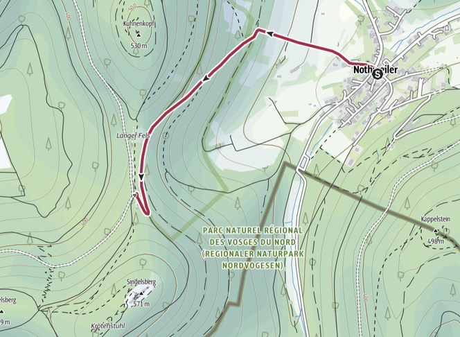 Zustieg: In Nothweiler in der Ortsmitte parken und die Graf-Zeppelin-Straße bergauf in den Wald folgen. Den ausgeschilderten Wanderweg Richtung Ruine Wegelnburg folgen. Man gelangt an das Südende der Felsenkette auf dem Felsengrat.