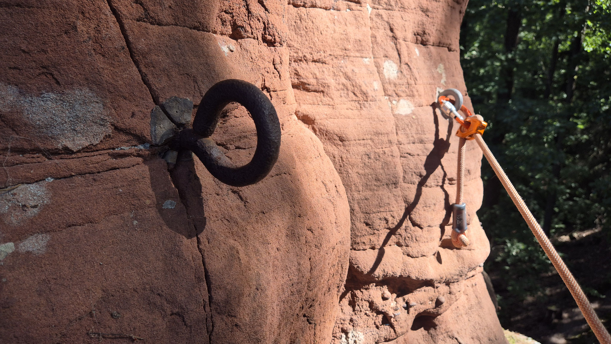 Der imposante Fels war viele Jahre hinter Zäunen des amerikanische Militärs versteckt. Doch seit der Premium Wanderweg direkt vorbei führt, erlebt der Fels eine neue Blüte. Ein wirklich formschöner Fels, an dem sehr selten geklettert wird. Dabei ist die Felsstruktur und Absicherung gar nicht so schlecht.