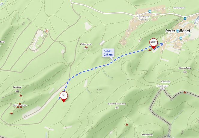 Anfahrt: In Petersbächel Vogesenstraße bis Ende der Häuser und bei Sportplatz P