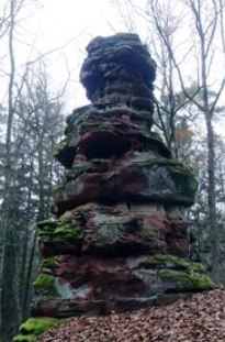 Zustieg: Auf den Radweg nördlich der "brütenden Henne" vorbei Richtung franz. Grenze. Nach ca. 2 km in einer verwaldeten Ebnung 200 m Richtung Süden zum Fels.