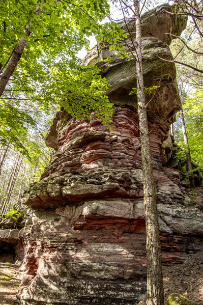 Zustieg: Von Glashütte markierten Wander- und MTB-Strecke Richtung Süden ansteigend bis zum Sattel. Der Weg macht hier eine Linkskurve, hier gerade aus in den Wald und nach 100 m zum Fels.