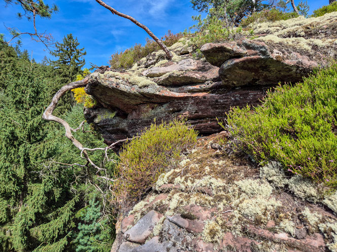 Im Finstertal nördlich von Erfweiler. Und am östl. Massiv gibt es sogar ein Wandbuch zur Belohnung.